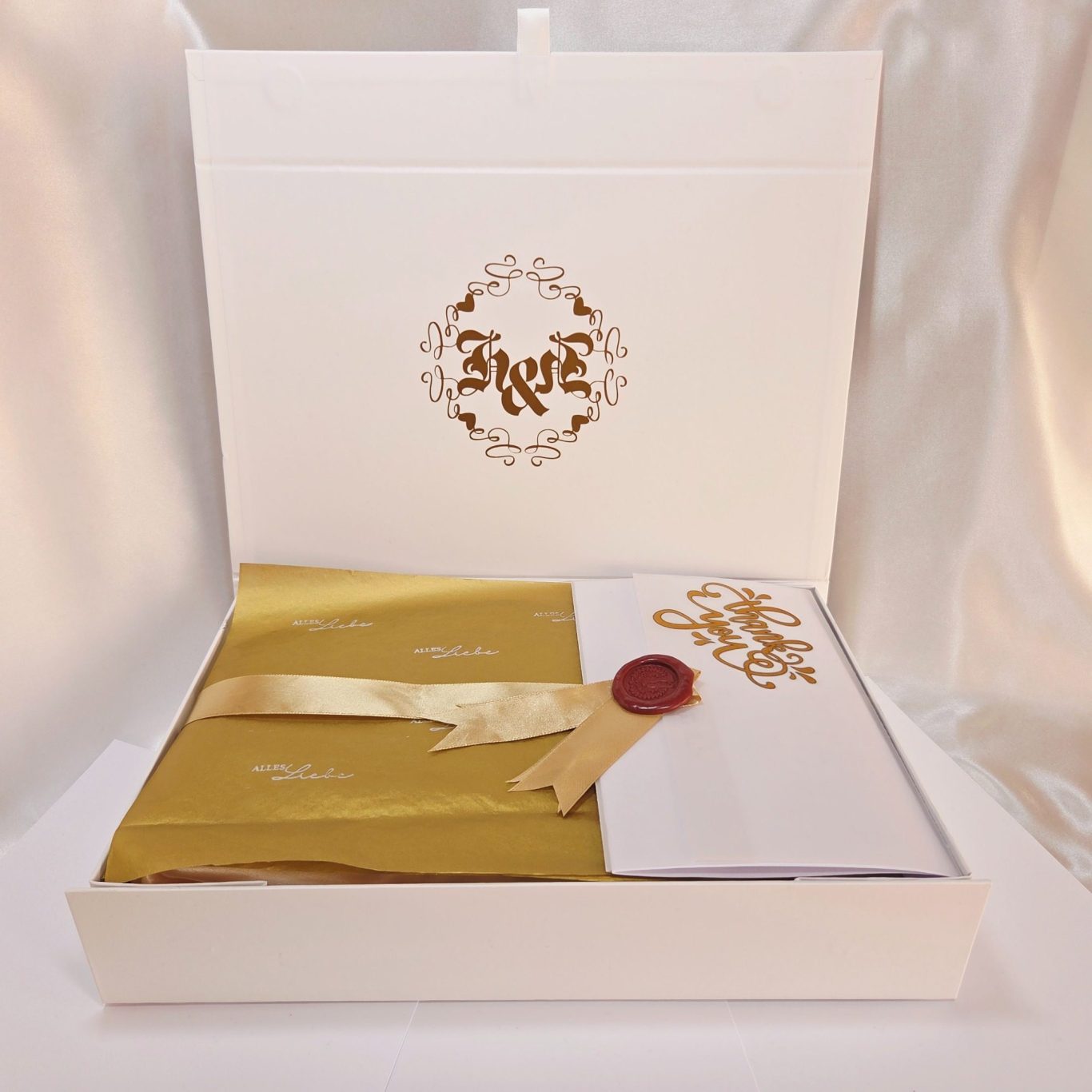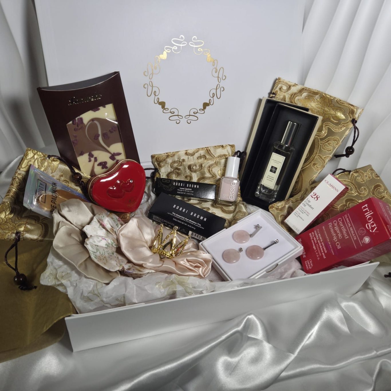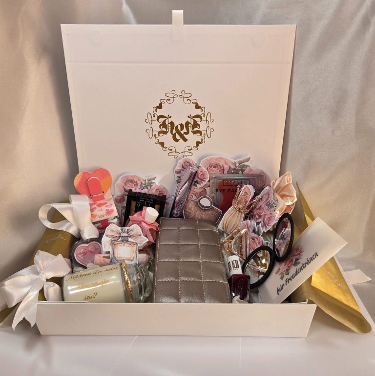 Dieses Paket vereint hochwertige Kosmetik, luxeriöse Pflegeprodukte, edle Accessoires und kleine Self-Care Highlights in einer sorgfältig kuratierten Box. Jedes Detail wurde ausgewählt, um Dir ein zeitloses, royales Bridal-Feeling zu schenken.